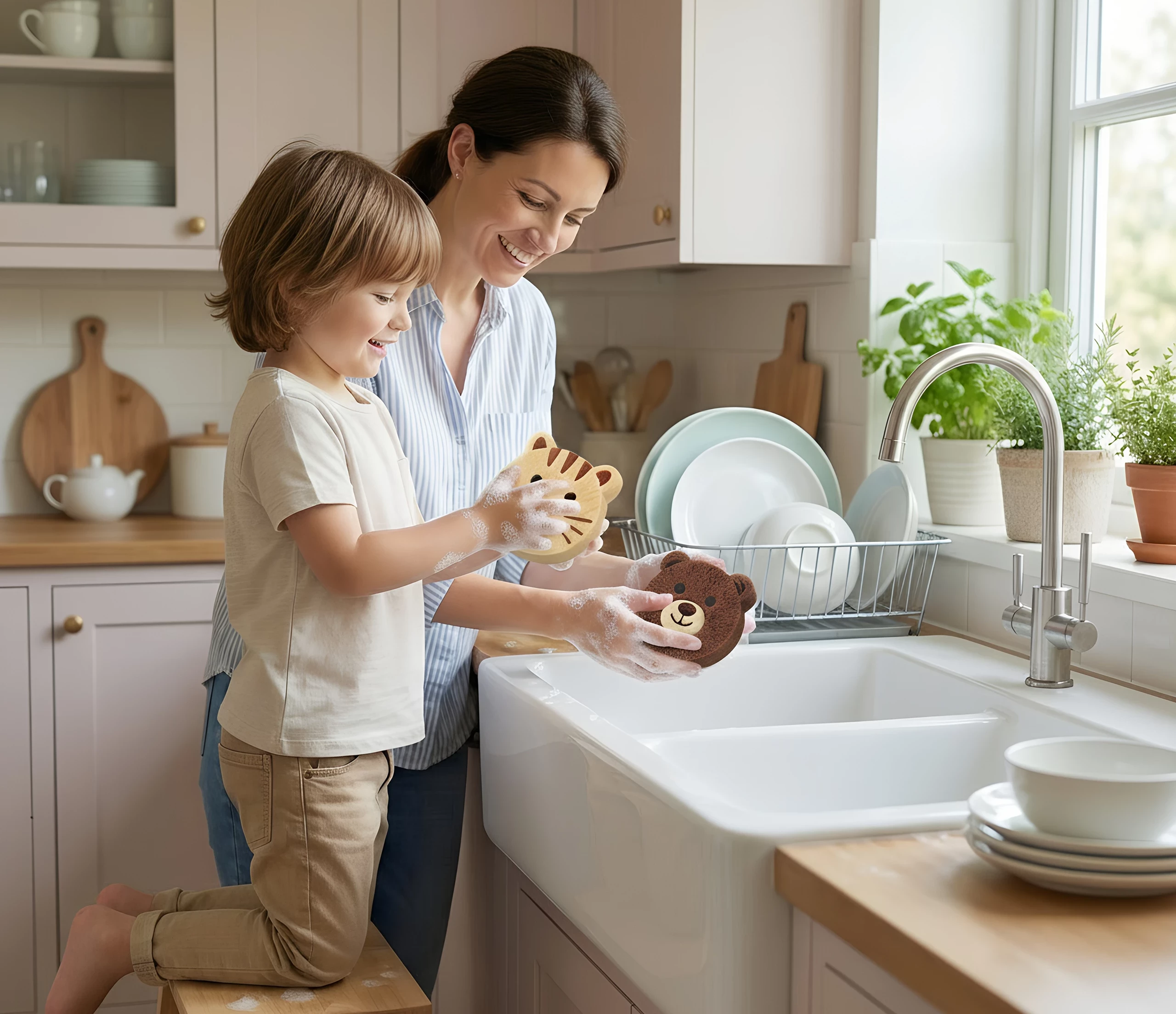 Our sponges turn everyday dishwashing into a fun activity for both mothers and children. With friendly faces and soft textures, Sponge Cubs make helping in the kitchen something kids actually enjoy. Because when cleaning is cute, everyone wants to join in.